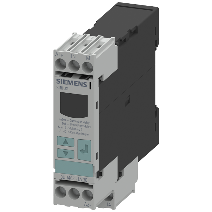 Digital monitoring relay Current monitoring, 22.5 mm from 2-500 mA AC/DC 0vershoot and undershoot 24 to 240 V AC/DC 50 to 60 Hz DC and AC ON delay and noise pulses delay 0.1 to 20 s Hysteresis 0.1 to 250 mA 1 change-over contact with or without fault buffer screw terminal Successor product for 3UG3521-1AL20, 3UG3521-1AG20 and 3UG3521-1AC48-0AA1