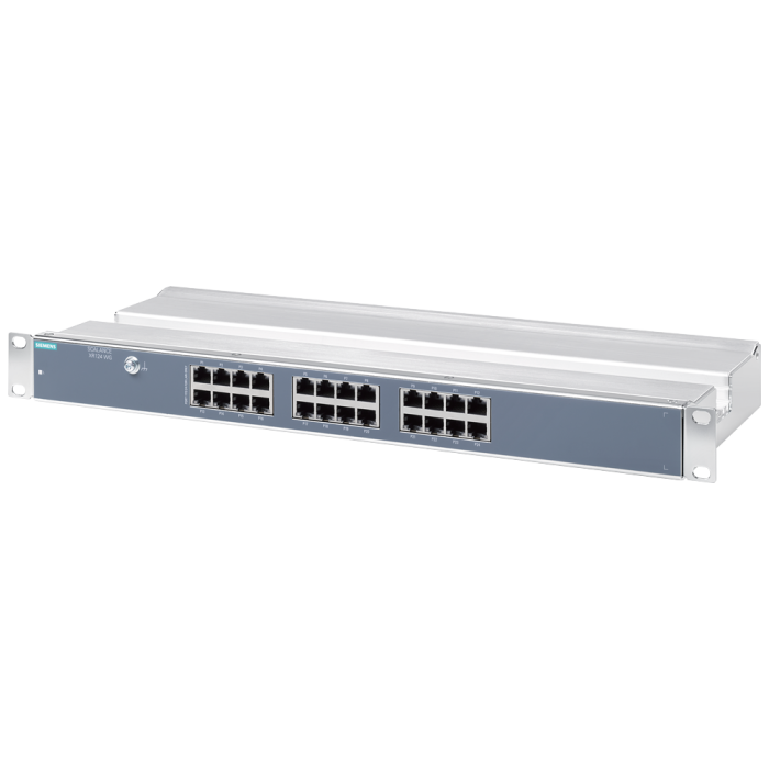 SCALANCE XR124WG; Unmanaged IE switch; 19" rack; 24 x 10/100Mbit/s electrical ports; LED diagnostics; Power supply 240 V AC (85 ÔÇô 264 V)