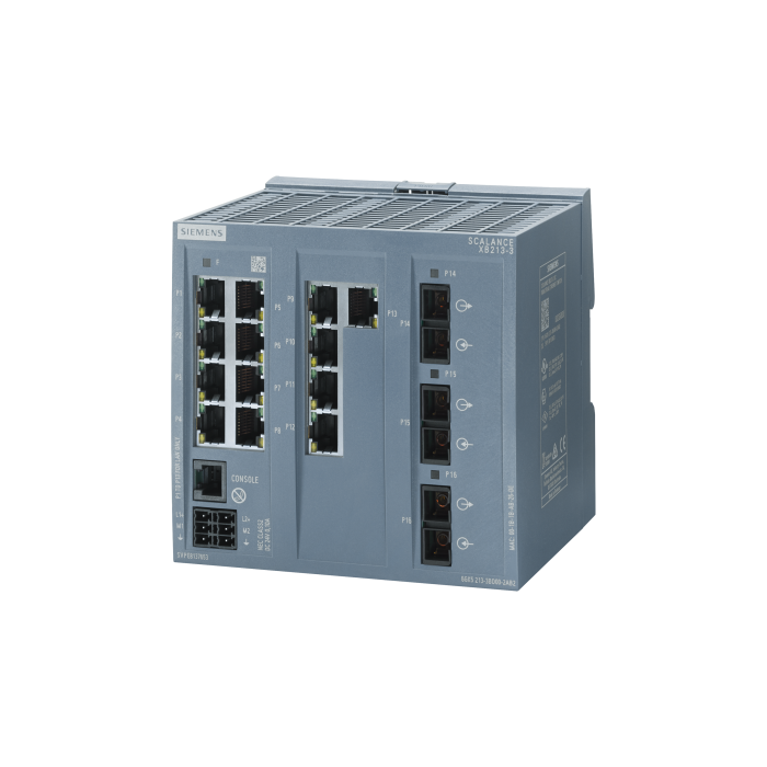 SCALANCE XB213-3 managed Layer 2 IE switch 13x 10/100 Mbps RJ45 ports, 3x MM FO SC port 1x console port, diagnostics LED, redundant power supply, IEC 62443-4-2 certified; temperature range 0 -¦C to +60 -¦C; mounting onto standard rail; default EtherNet/IP