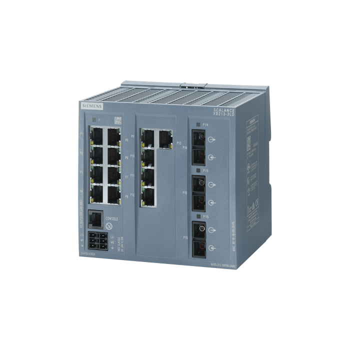 SCALANCE XB213-3LD managed layer 2 IE switch 13x 10/100 Mbps RJ45 ports, 3x SM FO SC port 1x console port, diagnostics LED, redundant power supply; IEC 62443-4-2 certified; temperature range 0 -¦C to +60 -¦C; mounting onto standard rail; default PROFINET