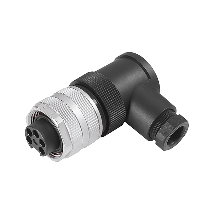 24 V socket - 7/8" Angled 5-pole max. 1.5 mm2 with screw terminals Cable diameter 6...8.7 mm Operational current max. 9 A IP67 in inserted and screwed condition