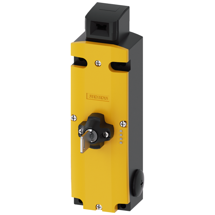 Safety position switch with tumbler Locking force 2600 N 5 directions of approaches Spring-locked Auxiliary release with lock Magnet voltage 24 V DC Monitoring actuator 2 NC/1 NO Monitoring magnet 2 NC/1 NO LED display yellow/green Supplied without actuator. Actuator 3SE5000-0AV0. please order separately