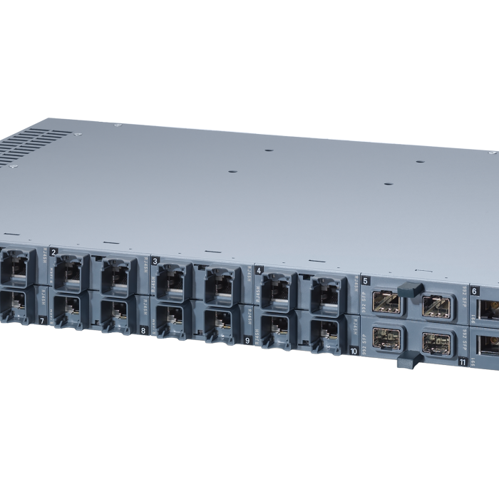 SCALANCE XR324-4M EEC; managed IE switch, 19 rack; 16x 10/100/1000 Mbit/s for RJ45 ports electrical; 4x 100/1000 Mbit/s for 2-port media modules, electrical or optical; LED diagnostics; error signaling contact; select/set pushbutton, PROFINET IO device, network management, integrated redundancy manager; power supply 2x 24 V DC; ports at the back. SCALANCE XR324-12M EEC MANAGED IE SWITCH, 19" RACK, POWER SUPPLY WITH 2 X 24V DC DATA CABLE OUTLET BACK SIDE, 16 X 10/100/1000MBIT/S RJ45 PORTS ELECTRICAL, 4 X 100/1000MBIT/S FOR 2-PORT- MEDIA MODULES, ELECTRICAL OR OPTICAL, LED DIAGNOSTICS, FAULT S
