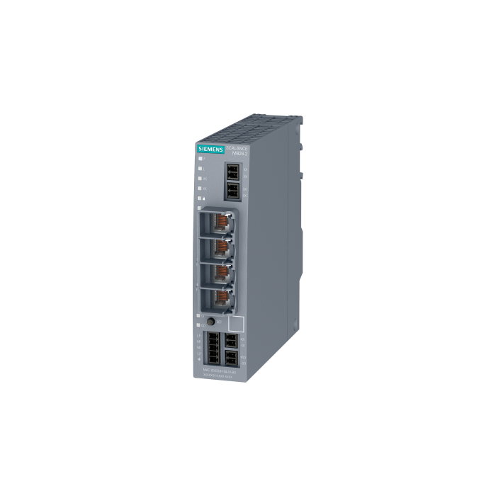 SCALANCE M826-2 SHDSL router; for the IP communication via 2-wire and 4-wire cables from Ethernet-based Programmable controllers; SHDSL topology: Point-to-point, bonding, line bridge mode; Routing mode with VPN, Firewall, NAT; 4-port switch; 1x digital input, 1x digital output