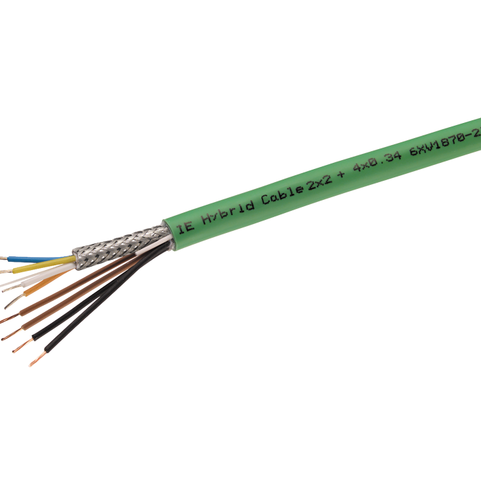 Industrial Ethernet Hybrid Cable 2x2+4x 0.34, flexible Cable, 4x CU CAT5, shielded (0.75mm) and 4x CU (0.34 mm2) for IE FC modular outlet with Power insert and IP67 hybrid plug-in connector Sold by the meter Max. delivery length 1000 m, Minimum order 20 m