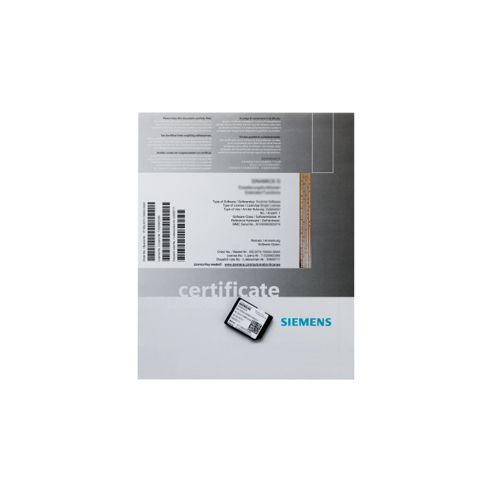 SINUMERIK 840D SL TECHNOLOGY PACKAGE MILLING SINUMERIK MDYNAMICS 5 AXIS (CONTENT: SHOPTURN/SHOPMILL, RESIDUAL MATERIAL DETECTION AND MACHINING 3D-SIMULATION 1 (FINISHED PART) SIMULTANEOUS RECORDING ADVANCED SURFACE, SPLINE-INTERPOLATION, TRANSMIT + PERIPHERAL SURFACE TRANSFORMATION MEASURING CYCLES ADD: HMI USER MEMORY ON CF-CARD OF NCU MACHINING PACKAGE 5 AXIS 3D TOOL RADIUS COMPENSATION MEASUREMENT MACHINE KINEMATIC SOFTWAREOPTION DELIVERY OF LICENSE SINUMERIK 840D SL TECHNOLOGIEPAKKET FREZEN SINUMERIK MDYNAMICS 5 AS (INHOUD: WINKELBEDRIJF/WINKELSMOLEN, RESTMATERIAALDETECTIE EN BEWERKING 3D-SIMULATIE 1 (AFGEWERKT ONDERDEEL) GELIJKTIJDIGE OPNAME GEAVANCEERDE OPPERVLAKTE, SPLINE-INTERPOLATIE, TRANSMIT + RANDOPPERVLAKTE TRANSFORMATIE ME ZEKER VAN CYCLI TOEVOEGEN: HMI GEBRUIKERSGEHEUGEN OP CF-KAART VAN NCU BEWERKINGSPAKKET 5 ASSEN 3D GEREEDSCHAP RADIUS COMPENSATIE MEETMACHINE KINEMATISCHE SOFTWAREOPTIE LEVERING VAN LICENTIE