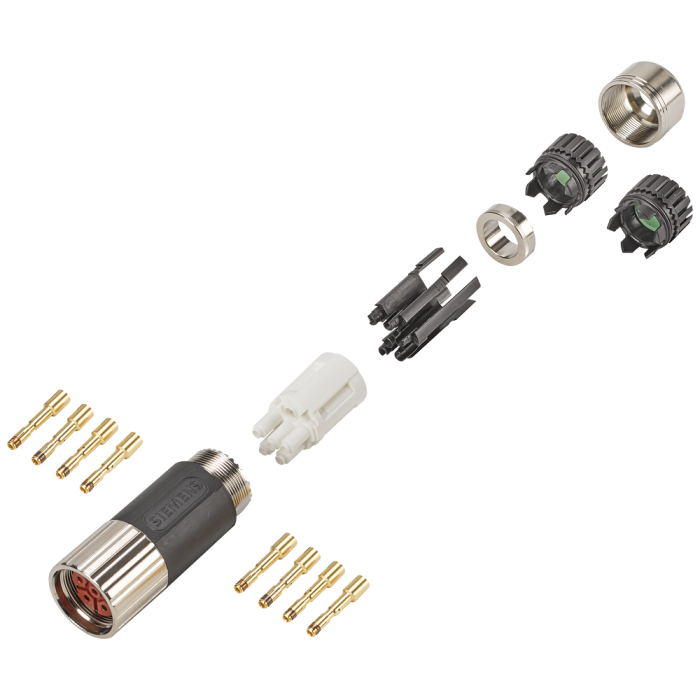power connector Sz. 1 type: 6FX2003-0LU00 6-pole socket, screw cap 1x 6-pole insulator 8x socket contact (1-2.5 mm2) 2x cable terminal for cable diameter: 7.5 - 12 / 9 - 15 voedingsconnector Sz. 1 type: 6FX2003-0LU00 6-polige stekkerdoos, schroefdop 1x 6-polige isolator 8x stekkerdooscontact (1-2,5 mm2) 2x kabelklem voor kabeldiameter: 7,5 - 12 / 9 - 15
