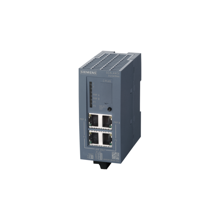 SCALANCE X204RNA; redundant network access; 4x 100 Mbit/s RJ45 ports; LED diagnostics; error-signaling contact with set button; redundant power supply; network management; incl. electronic manual on CD-ROM, C-plug optional for HSR networks; SCALANCE X204RNA; redundante netwerktoegang; 4x 100 Mbit/s RJ45-poorten; LED-diagnose; storingsmeldcontact met instelknop; redundante voeding; netwerkbeheer; inclusief elektronische handleiding op cd-rom, C-stekker optioneel voor HSR-netwerken;