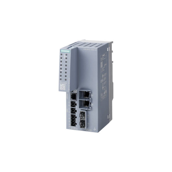 SCALANCE SC632-2C Industrial Security Appliance; For protection of devices and networks in discrete manufacturing and the process industry For protection of industrial communication with firewall; Further functions: Address translation (NAT/NAPT); Connection to SINEMA RC; 2x combo port electrical or optical; 10/100/1000 Mbps RJ45 or 100 Mbps SFP or 1000 Mbps SFP